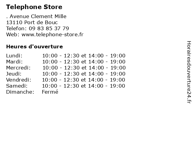 Lundi | 10:00-12:30 et 14:00-19:00 |