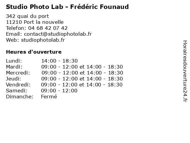 | Mardi | 09:00-12:00 et 14:00-18:30 |