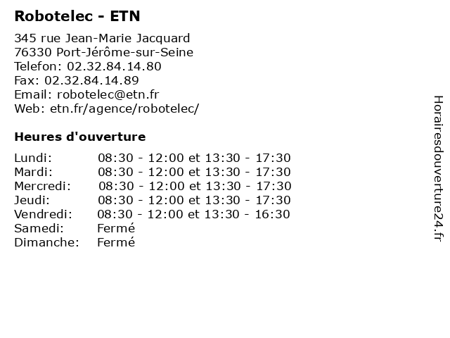 | Lundi | 08:30-12:00 et 13:30-17:30 |