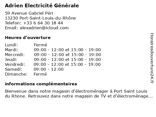 | Mercredi | 09:00-12:00 et 15:00-19:00 |