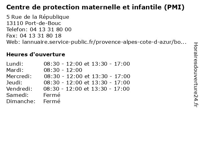 | Lundi | 08:30-12:00 et 13:30-17:00 |