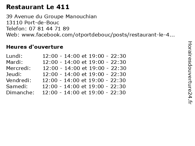 Lundi | 12:00-14:00 et 19:00-22:30 |