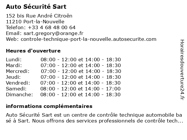 | Dimanche | 08:00-12:00 et 14:00-18:30 |