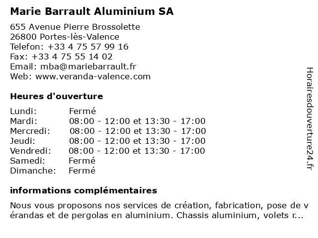 Termes de recherche pour Marie Barrault Aluminium SA:marie, sa, barrault, aluminium |