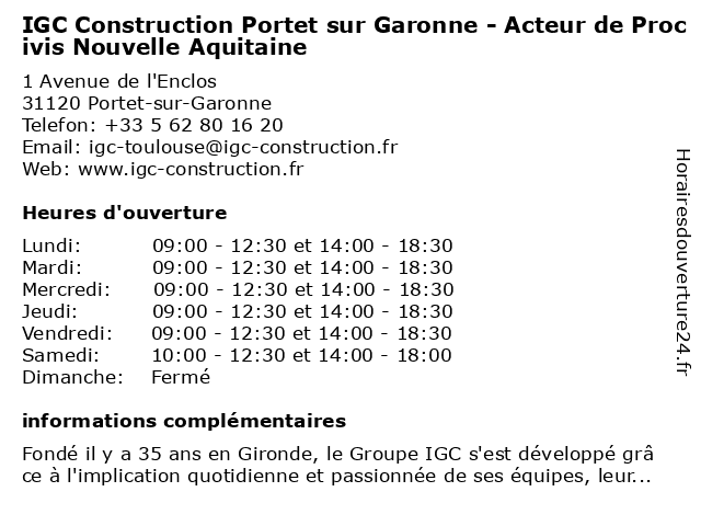 | Samedi | 10:00-12:30 et 14:00-18:00 |