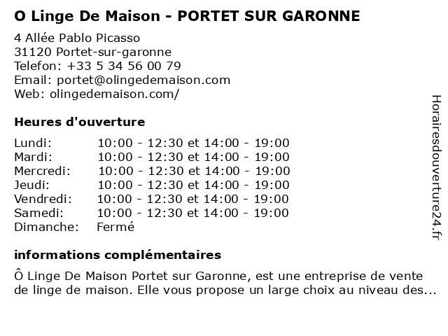 1 O Linge De Maison (Distance: 1,19 km) 27 Avenue de l'Enclos, 31120 Portet-sur-Garonne de, linge, maison 2 O linge de Maison - TOULOUSE (Distance: 7,70 km) 3 Rue Saint-Pantaléon, 31000 Toulouse de, linge, maison, toulouse 3 Cuisines Schmidt (Distance: 0,10 km) 3 Allée Pablo Picasso, 31120 Portet-sur-Garonne aménagement, cuisine, cuisines, cuisiniste, intérieur, maison, meubles, schmidt, équipement 4 Cuisines SoCoo'c (Distance: 0,10 km) 3 Allée Pablo Picasso, 31120 Portet-sur-Garonne aménagement, cuisine, cuisines, cuisiniste, intérieur, maison, meubles, socoo'c, équipement 5 Cuisines Schmidt (Distance: 0,10 km) 3 Allée Pablo Picasso, 31120 Portet-sur-Garonne aménagement, cuisine, cuisines, cuisiniste, intérieur, maison, meubles, schmidt, équipement 6 La Compagnie du Lit (Portet-sur-Garonne) (Distance: 0,18 km) 1 Bis Allée Pablo Picasso, 31120 Portet-sur-Garonne alèse, compagnie, couette, dosseret, draps, du, garonne, la, linge de lit, lit, literie, matelas, oreiller, pieds de lit, portet, sommier, sur, surmatelas |