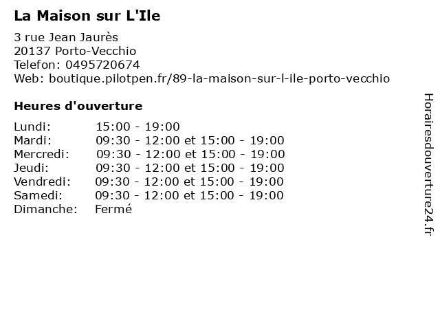 | Dimanche | Fermé |