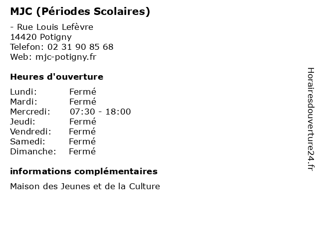 | Lundi | Fermé |