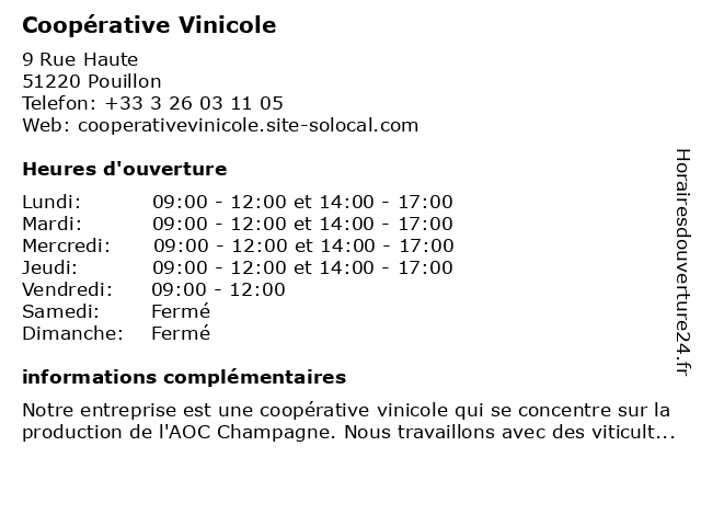 1 Coopérative du Syndicat Général des Vignerons - CSGV (Distance: 5,96 km) - Rue de la gare, 51140 Muizon agricoles, coopérative, csgv, des, du, général, magasins, producteurs, syndicat, vignerons, viticole 2 CRVC - Coopérative Régionale des Vins de Champagne (Distance: 8,45 km) 5 Rue Gosset, 51100 Reims adhésion, association, champagne, coopérative, crvc, de, des, régionale, vins, viticole 3 Coopérative du Syndicat Général des Vignerons - CSGV (Distance: 11,86 km) - Route de Pargny, 51390 Ville Dommange agricoles, coopérative, csgv, des, du, général, magasins, producteurs, syndicat, vignerons, viticole 4 Acolyance Vigne (Distance: 24,59 km) 11 allée des Jardins du Roi, 51380 Verzy acolyance, conseils, fournitures, matériels, oenologie, vigne, vinicole, vins 5 Champagne Guillozet (Distance: 27,56 km) 16 rue Chatillon, 51700 Vandières champagne, coopérative de champagne, guillozet, producteurs, vente directe de vins 6 Cooperative Vinicole (Distance: 29,27 km) 41 Rue De La Cooperative, 51480 Oeuilly cooperative, vinicole |