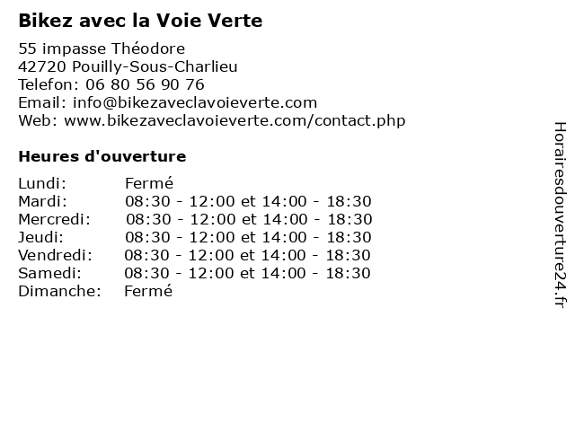 | Samedi | 08:30-12:00 et 14:00-18:30 |