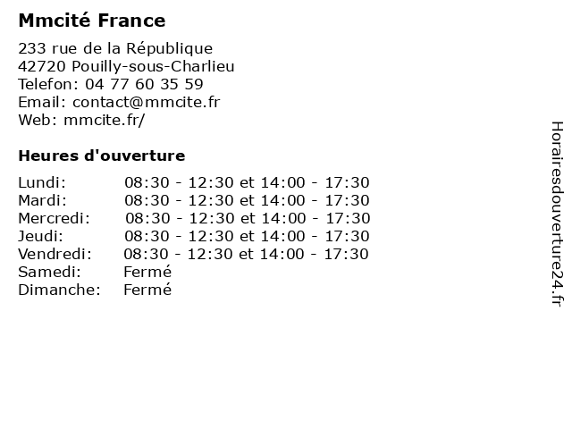 | Mardi | 08:30-12:30 et 14:00-17:30 |