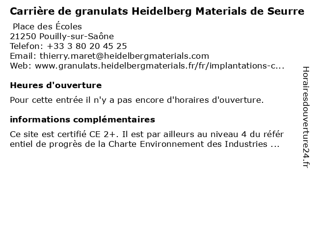 | Appeler Carrière de granulats Heidelberg Materials de Seurre | |