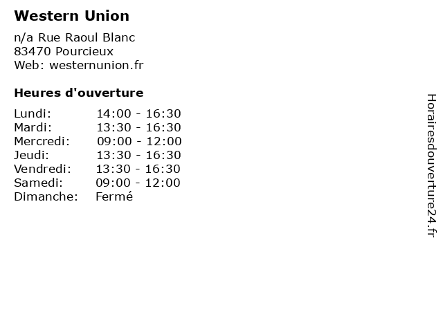 1 Western Union (Distance: 5,46 km) n/a Rue Marius Caius, 83910 Pourrieres centre de remmittance, l'argent, transfert d'argent, union, western 2 Western Union (Distance: 8,44 km) 1 Square Jean, 13114 Puyloubier centre de remmittance, l'argent, transfert d'argent, union, western 3 Western Union (Distance: 10,23 km) 17 Avenue De Brignoles, 83170 Rougiers centre de remmittance, l'argent, transfert d'argent, union, western 4 Western Union (Distance: 11,15 km) n/a Avenue Julien Jourdan, 83860 Nans Les Pins centre de remmittance, l'argent, transfert d'argent, union, western 5 Western Union (Distance: 11,61 km) n/a Place De La Victoire, 83640 St Zacharie centre de remmittance, l'argent, transfert d'argent, union, western 6 Western Union (Distance: 16,69 km) n/a Route Du Cimetiere, 13390 Auriol centre de remmittance, l'argent, transfert d'argent, union, western |