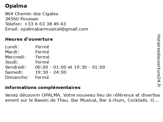 Venez découvrir OPALMA. Votre nouveau lieu de référence et divertissement sur le Bassin de Thau. Bar Musical, Bar à rhum, Cocktails. OPALMA vous reçoit pour vous divertir avec des soirées div...