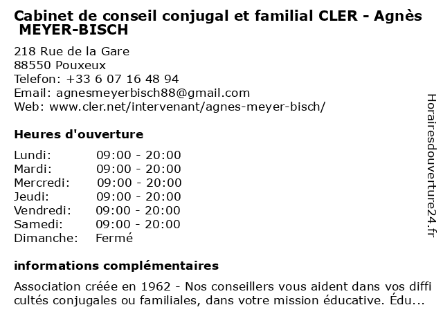 Termes de recherche pour Cabinet de conseil conjugal et familial CLER - Agnès MEYER-BISCH:et, de, cabinet, agnès, conseil, meyer, familial, cler, bisch, conjugal |