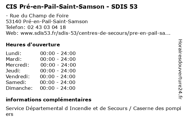 | Samedi | 00:00-24:00 |