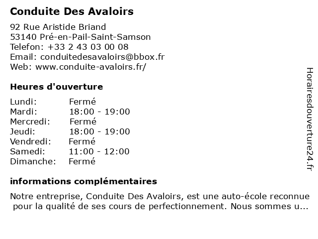 1 Garage des Avaloirs (Distance: 0,34 km) 25 Rue Aristide Briand, 53140 Pré-en-Pail accessoires, automobile, avaloirs, carrosserie, des, garage, réparation, vidange 2 TotalEnergies Access - REL.AVALOIRS (Distance: 0,70 km) N12 Rn 12, 53140 Pré-en-Pail-Saint-Samson access, gas station, rel.avaloirs, station service, tankstelle, total, totalenergies 3 Communauté de Communes - Mont des Avaloirs (Distance: 2,44 km) 1 Rue Corniche de Pail, 53140 Pré-en-Pail administration, avaloirs, communauté, communes, de, des, du, mont, services publics 4 Le Relais des Avaloirs (Distance: 6,71 km) Le Bourg, 53370 Boulay-Les-Ifs avaloirs, café, des, gael, heveder, le, relais, restaurants 5 Pharmacie des Avaloirs (Distance: 9,88 km) 7 Rue des Avaloirs, 53370 Saint-Pierre-des-Nids avaloirs, des, pharmacie 6 Nord Mayenne Conduite (Distance: 10,13 km) 5 Rue du Montaigu, 53370 Saint-Pierre-des-Nids conduite, mayenne, nord |
