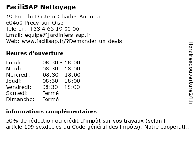 | Lundi | 08:30-18:00 |