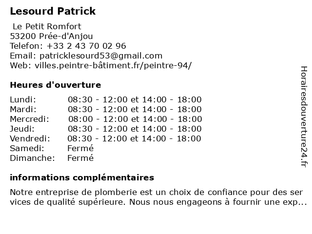 | Lundi | 08:30-12:00 et 14:00-18:00 |