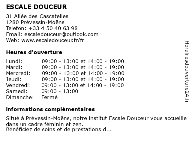 | Lundi | 09:00-13:00 et 14:00-19:00 |
