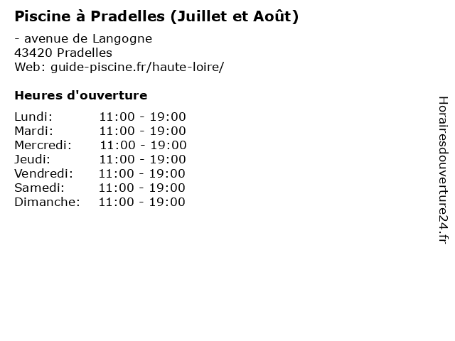 | Mercredi | 11:00-19:00 |