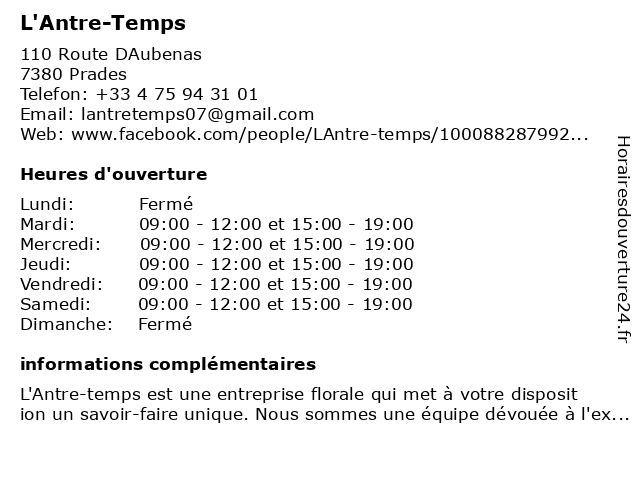 | Mardi | 09:00-12:00 et 15:00-19:00 |
