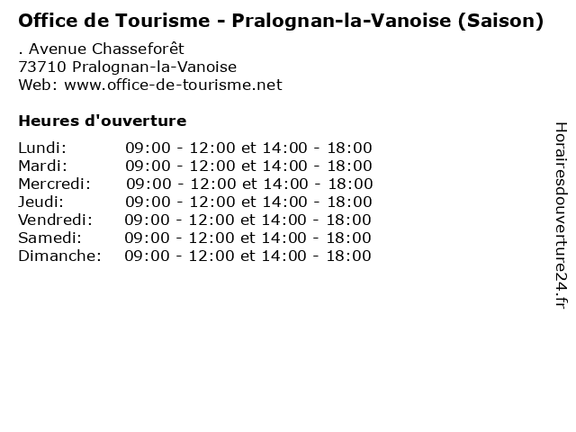 | Dimanche | 09:00-12:00 et 14:00-18:00 |