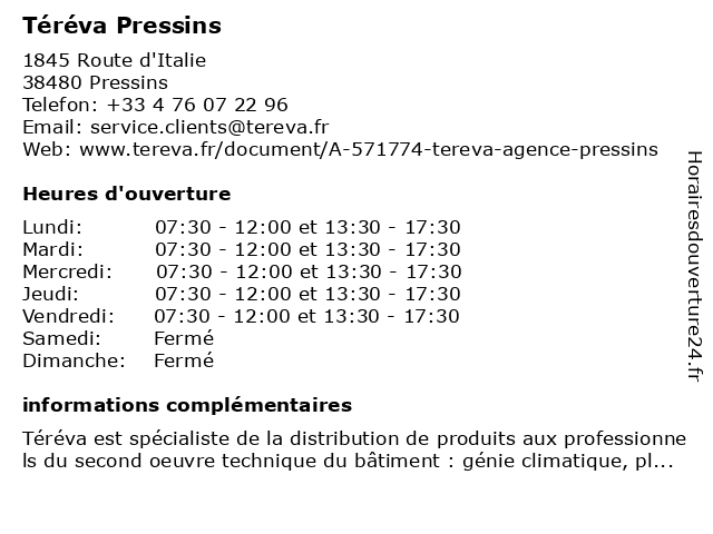 2 Téréva Direct - expo Grandbains (Distance: 21,12 km) 273 avenue du grand Ariettaz, 73000 Chambéry bricolage, chauffage, climatisation, direct, expo, grandbains, outillage, tereva, téréva, électricité 3 Téréva Aix-les-Bains (Distance: 29,22 km) 63 Avenue du Président Franklin Roosevelt, 73100 Aix-les-Bains aix, bains, les, téréva 4 Téréva Bourgoin-Jallieu (Distance: 30,67 km) 11 Rue Edouard Branly, 38300 Bourgoin-Jallieu bourgoin, jallieu, téréva 6 Téréva Saint-Marcellin (Distance: 49,46 km) 3 Chemin des Echavagnes, 38160 Saint-Marcellin marcellin, saint, téréva |