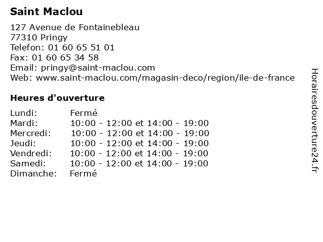 | Samedi | 10:00-12:00 et 14:00-19:00 |