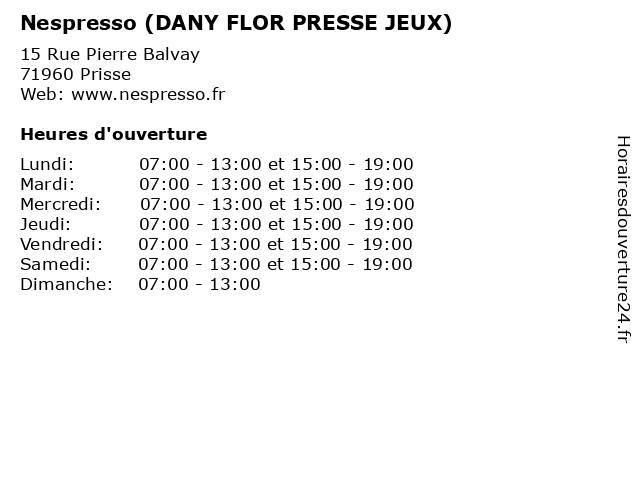 | Mardi | 07:00-13:00 et 15:00-19:00 |