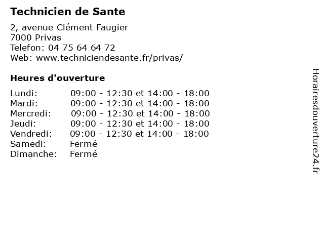 Lundi | 09:00-12:30 et 14:00-18:00 |