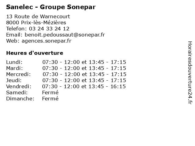 | Lundi | 07:30-12:00 et 13:45-17:15 |