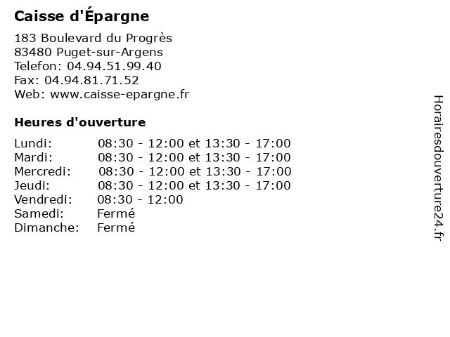 1 Caisse d'Épargne (Distance: 4,37 km) 24 Avenue Général de Gaulle, 83520 Roquebrune-sur-Argens banque, caisse, carte, d'epargne, d'épargne, services 2 Caisse d'Épargne (Distance: 4,59 km) . Avenue de l'Argens, 83600 Fréjus banque, caisse, carte, d'epargne, d'épargne, services 3 Caisse d'Épargne (Distance: 5,40 km) 26 Avenue Magdelein, 83480 Puget-sur-Argens banque, caisse, carte, d'epargne, d'épargne, services 4 Caisse d'Épargne (Distance: 5,70 km) . Avenue du Maréchal de Lattre de Tassigny, 83600 Frejus banque, caisse, carte, d'epargne, d'épargne, services 5 Caisse d'Épargne (Distance: 7,01 km) 34 Boulevard Félix Martin, 83700 Saint-Raphaël banque, caisse, carte, d'epargne, d'épargne, services 6 Caisse d'Épargne (Distance: 7,95 km) 800 Impasse Louis Castillon,, 83370 Fréjus banque, caisse, carte, d'epargne, d'Épargne, d'épargne, services |
