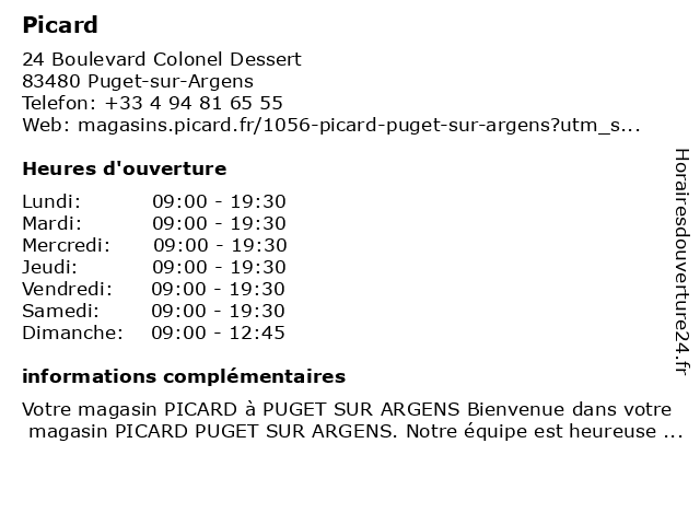 Votre magasin PICARD à PUGET SUR ARGENS Bienvenue dans votre magasin PICARD PUGET SUR ARGENS. Notre équipe est heureuse de vous accueillir et pourra vous conseiller avec professionnalisme et en t...