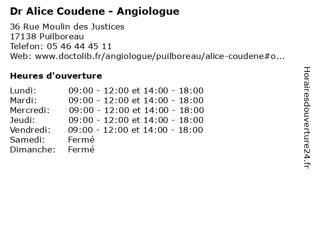| Mercredi | 09:00-12:00 et 14:00-18:00 |