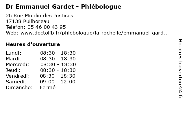 | Mercredi | 08:30-18:30 |