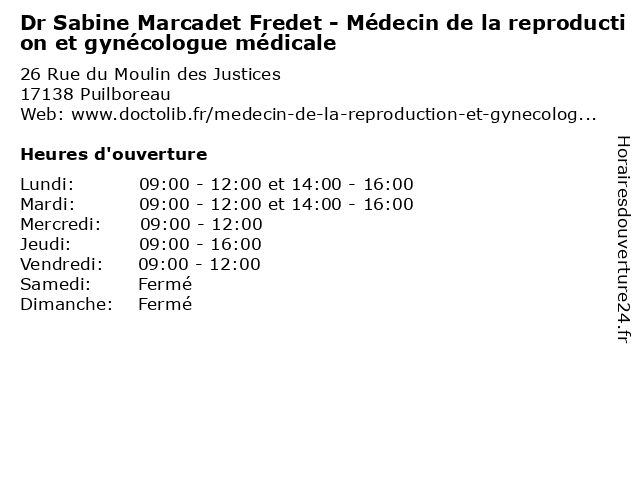 1 Dr Stéphanie Legrand - Médecin de la reproduction et gynécologue médicale (Distance: 0,00 km) 26 Rue du Moulin des Justices, 17138 Puilboreau consultation, de, docteur, dr, et, gynécologue, la, legrand, med, médecin, médicale, reproduction, stéphanie, traitement 2 Dr Nicolas Proust - Médecin de la reproduction et gynécologue médicale (Distance: 0,00 km) 26 Rue du Moulin des Justices, 17138 Puilboreau consultation, de, docteur, dr, et, gynécologue, la, med, médecin, médicale, nicolas, proust, reproduction, traitement 3 Dr Loic De Poncheville - Gynécologue-obstétricien (Distance: 0,12 km) 36 Rue du Moulin des Justices, 17138 Puilboreau bebe, de, dr, gynecologie, gynécologue, loic, maternite, obstetrique, obstétricien, poncheville 4 Dr Marion Jegu - Gynécologue médicale (Distance: 0,21 km) 98 Rue Moulin de la Mozay, 17000 La Rochelle bebe, dr, gynecologie, gynécologue, jegu, marion, maternite, médicale, obstetrique 5 Dr Nicolas Proust - Médecin de la reproduction et gynécologue médicale (Distance: 0,22 km) 98 Rue Moulin de la Mozay, 17000 La Rochelle consultation, de, docteur, dr, et, gynécologue, la, med, médecin, médicale, nicolas, proust, reproduction, traitement 6 Dr Stéphanie Legrand - Médecin de la reproduction et gynécologue médicale (Distance: 0,22 km) 98 Rue Moulin de la Mozay, 17000 La Rochelle consultation, de, docteur, dr, et, gynécologue, la, legrand, med, médecin, médicale, reproduction, stéphanie, traitement |