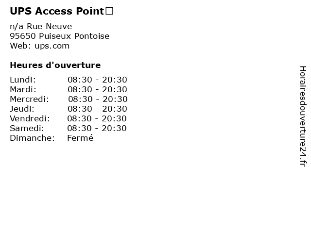 1 UPS Access Point™ (Distance: 5,70 km) 1 Place Du General De Gaulle, 95300 Pontoise access, archiviazione, giochi, il, il monitoraggio, il trasporto, l'ups, la fatturazione, laboratorio, pagamenti, point™, servizio di guida, snc, soluzione ups, ups 2 UPS Access Point™ (Distance: 5,95 km) 9 Place De L Hotel De Ville, 95300 Pontoise access, archiviazione, giochi, il, il monitoraggio, il trasporto, l'ups, la fatturazione, laboratorio, pagamenti, point™, servizio di guida, snc, soluzione ups, ups 3 UPS Access Point™ (Distance: 8,81 km) 57 Rue Maurice Berteaux, 78700 Conflans Ste Honorine access, archiviazione, giochi, il, il monitoraggio, il trasporto, l'ups, la fatturazione, laboratorio, pagamenti, point™, servizio di guida, snc, soluzione ups, ups 4 UPS Access Point™ (Distance: 13,77 km) 45 AVE DE LA GARE, 95760 VALMONDOIS access, archiviazione, giochi, il, il monitoraggio, il trasporto, l'ups, la fatturazione, laboratorio, pagamenti, point™, servizio di guida, snc, soluzione ups, ups 5 UPS Access Point™ (Distance: 19,60 km) 1 Rue Jules Ferry, 78400 Chatou access, archiviazione, giochi, il, il monitoraggio, il trasporto, l'ups, la fatturazione, laboratorio, pagamenti, point™, servizio di guida, snc, soluzione ups, ups 6 UPS Access Point (Distance: 2,61 km) 27 RUE DE LA REPUBLIQUE, 95650 BOISSY L AILLERIE access, commerce international, expédition internationale, fret, packaging supplies, petites entreprises, point, ups  |