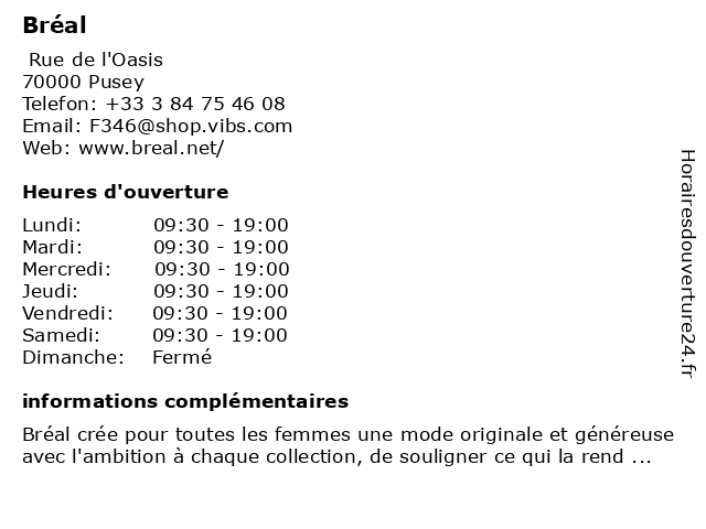 1 Bréal (Distance: 3,27 km) 47 Rue Paul Morel, 70000 Vesoul accessoires, bréal, mode, prêt-à-porter, vêtements 2 Vib's (Cache Cache - Bonobo - Bréal) (Distance: 0,32 km) Rue de l'Oasis, 70000 Pusey blazer femme, bonobo, boutique vêtement, bréal, cache, cardignan femme, chaussures femme, gilet femme, jean femme, jean homme, magasin vêtement, magasin vêtements mixte, manteau femme, manteau homme, mode femme, pull femme, pull homme, robe femme, sac femme, t-shirt femme, t-shirt homme, tailleur femme, top femme, vib's, vêtement femme, vêtement homme, vêtement mixte 3 Bréal (Distance: 26,93 km) 43 Avenue de la République, 70200 Lure blazer femme, boutique vêtement, breal, bréal, cardignan femme, chaussures femme, gilet femme, jean femme, magasin vêtement, manteau femme, mode femme, pull femme, robe femme, sac femme, t-shirt femme, tailleur femme, top femme, vêtement femme 6 Vib's (Cache Cache - Bonobo - Bréal) (Distance: 50,11 km) 2d Rue Louis Aragon, 25000 Besançon blazer femme, bonobo, boutique vêtement, bréal, cache, cardignan femme, chaussures femme, gilet femme, jean femme, jean homme, magasin vêtement, magasin vêtements mixte, manteau femme, manteau homme, mode femme, pull femme, pull homme, robe femme, sac femme, t-shirt femme, t-shirt homme, tailleur femme, top femme, vib's, vêtement femme, vêtement homme, vêtement mixte |