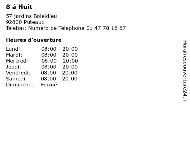 | Lundi | 08:00-20:00 |