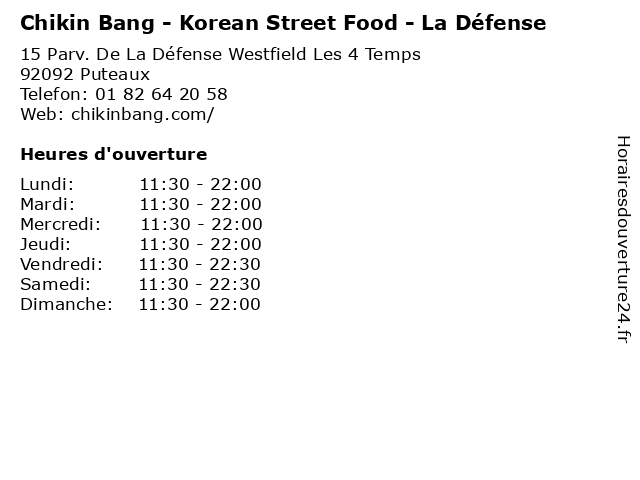 Termes de recherche pour Chikin Bang - Korean Street Food - La Défense:la, food, defense, restaurants, street, bang, fast-food, korean, chikin |