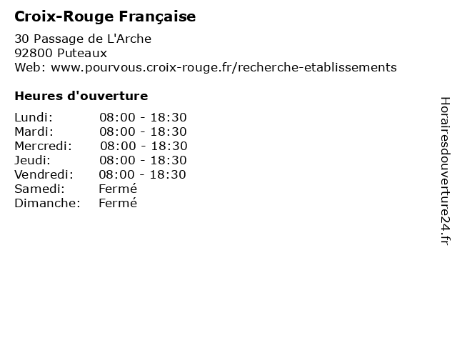 1 Croix-Rouge Française (Distance: 0,80 km) 4 Rue de Rouen, 92400 Courbevoie bénévole, courbevoie, croix, croix-rouge, française, locale, rouge, secours, unité 2 Croix-Rouge Française (Distance: 1,31 km) 109 Rue Veuve Lacroix, 92000 Nanterre bénévole, croix, croix-rouge, française, locale, nanterre, rouge, secours, unité 3 Croix-Rouge Française (Distance: 1,95 km) 23 Rue du Château, 92200 Neuilly-sur-Seine bénévole, croix, croix-rouge, française, locale, neuilly-sur-seine, rouge, secours, unité 4 Croix-Rouge Française (Distance: 5,45 km) 39 Rue du Landy, 92110 Clichy aide, creche, croix, française, prévention, rouge, rééducation, santé, services 5 Croix-Rouge Française (Distance: 5,96 km) 95 Rue Michel Ange, 75016 Paris 16 aide, croix, française, prévention, rouge, rééducation, santé, services 6 Croix-Rouge Française (Distance: 6,34 km) 35 Rue Georges Sorel, 92100 Boulogne-Billancourt aide, creche, croix, française, prévention, rouge, rééducation, santé, services |