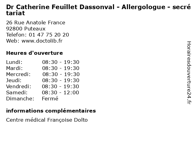 Termes de recherche pour Dr Catherine Feuillet Dassonval - Allergologue - secrétariat:catherine, médicaments, santé, spécialiste, secretariat, médecins, dr, allergologue, feuillet, dassonval |