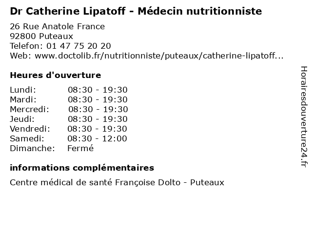 Termes de recherche pour Dr Catherine Lipatoff - Médecin nutritionniste:catherine, générale, medecine, santé, nutritionniste, docteur, médecin, dr., médecins, dr, lipatoff |