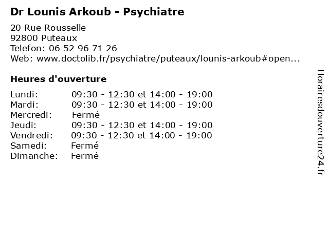 | Mardi | 09:30-12:30 et 14:00-19:00 |