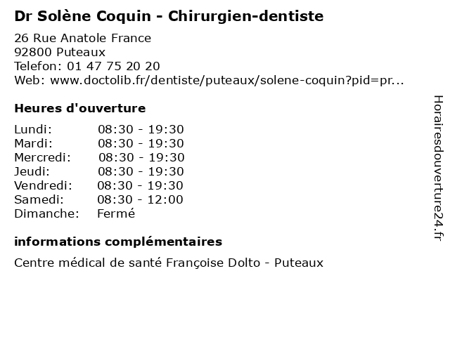 Termes de recherche pour Dr Solène Coquin - Chirurgien-dentiste:dentaire, solène, docteur, dr, dentiste, chirurgien, coquin |