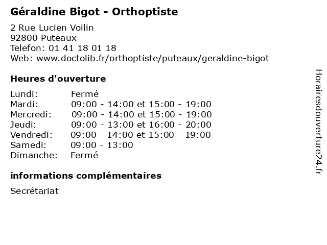 | Mardi | 09:00-14:00 et 15:00-19:00 |