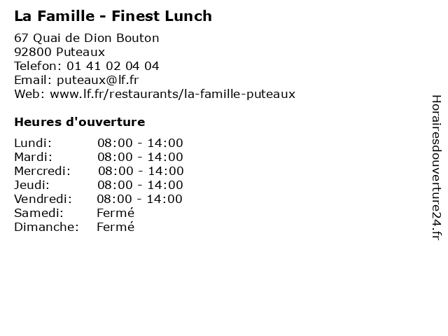 Termes de recherche pour La Famille - Finest Lunch:restauration, restaurant, la, déjeuner, famille, lunch, sandwicherie, finest |