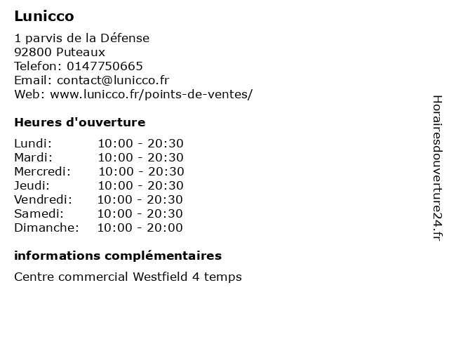 | Lundi | 10:00-20:30 |