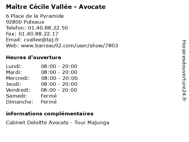 1 Maître Cécile Debin - Avocate (Distance: 0,00 km) 6 Place de la Pyramide, 92800 Puteaux avocate, avocats, civils, cécile, debin, droits, juridiques, maître 2 Maître Cécile Mevellec - Avocate (Distance: 0,00 km) 6 Place de la Pyramide, 92800 Puteaux avocate, avocats, civils, cécile, droits, juridiques, maître, mevellec 3 Maître Marie-Cécile Boisbault - Avocate (Distance: 0,72 km) 1-2 Place des Saisons, 92400 Courbevoie avocate, avocats, boisbault, civils, cécile, droits, juridiques, marie, maître 4 Bureau Vallée (Distance: 1,27 km) 65 Avenue Marceau, 92400 Courbevoie bureau, fournitures, mobilier, papeterie, telephonie, toners, vallée 5 Cécile-Marie Bontour - Sage-femme (Distance: 1,49 km) 36 boulevard du Général Leclerc, 92200 Neuilly-sur-Seine bontour, cecile, consultation, cécile, docteur, femme, marie, med, médecin, sage, traitement 6 Maître Cécile Puiberneau - Avocate (Distance: 3,05 km) 38 Rue Chaptal, 92300 Levallois-Perret avocate, avocats, civils, cécile, droits, juridiques, maître, puiberneau |